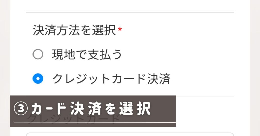 クレジットカード決済を選択し、カード番号などを入力してください⬇️
